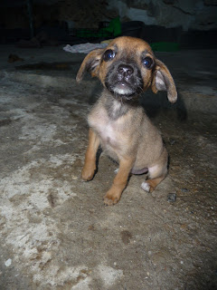 Hoje tivemos de comprar uma cadela... Andavam 3 ciganos com uma cachorrinha com uma pata partida a tentar vendê-la por 20€... Fomos conversar com eles e não conseguimos obviamente deixar aquele ser minúsculo apavorado e cheio de dores com eles. Sabíamos que o seu fim seria triste se não a resgatássemos. Por isso mesmo tivemos de a comprar... A pata foi partida a pontapé por um irmão de um dos miúdos... Estava cheia de dores, de pulgas e carregada de parasitas internos.